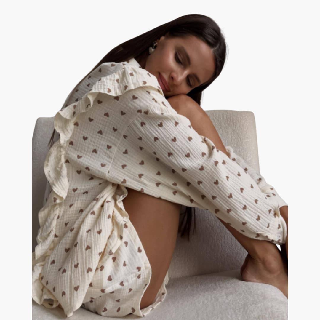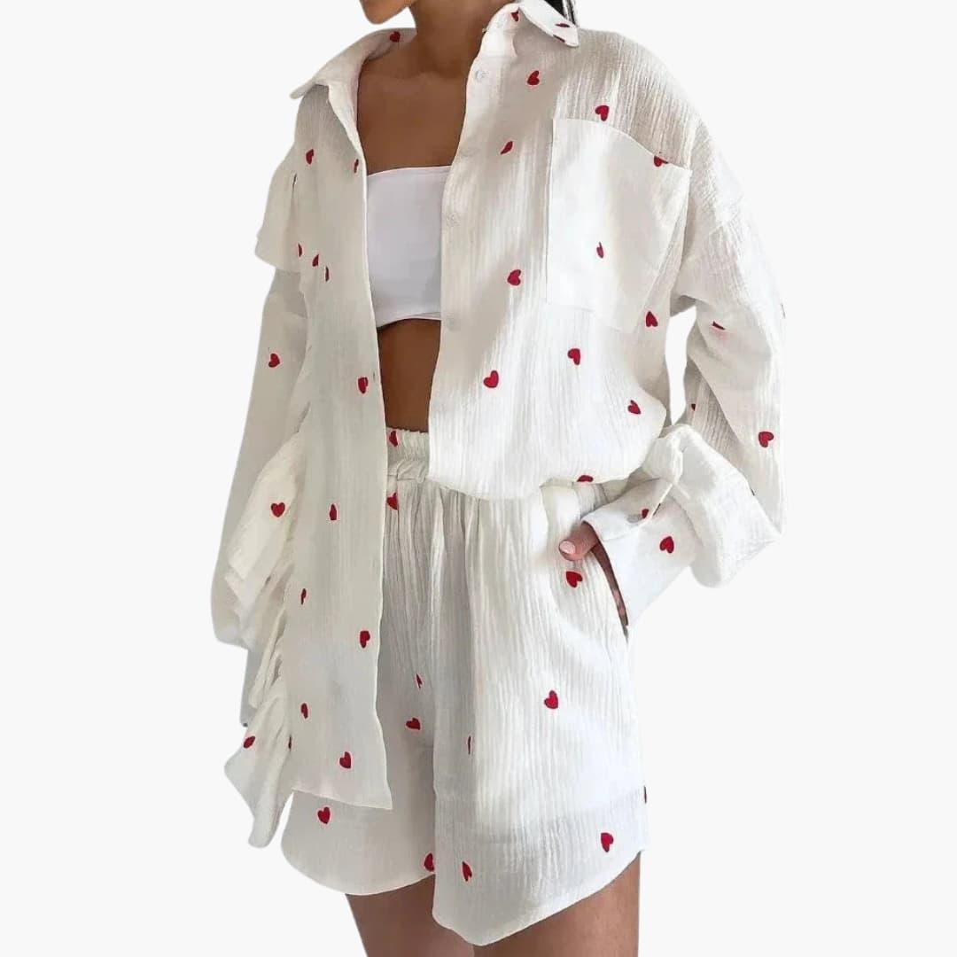 Satynowy zestaw piżam damskich z górą na guziki i paskowanym wzorem