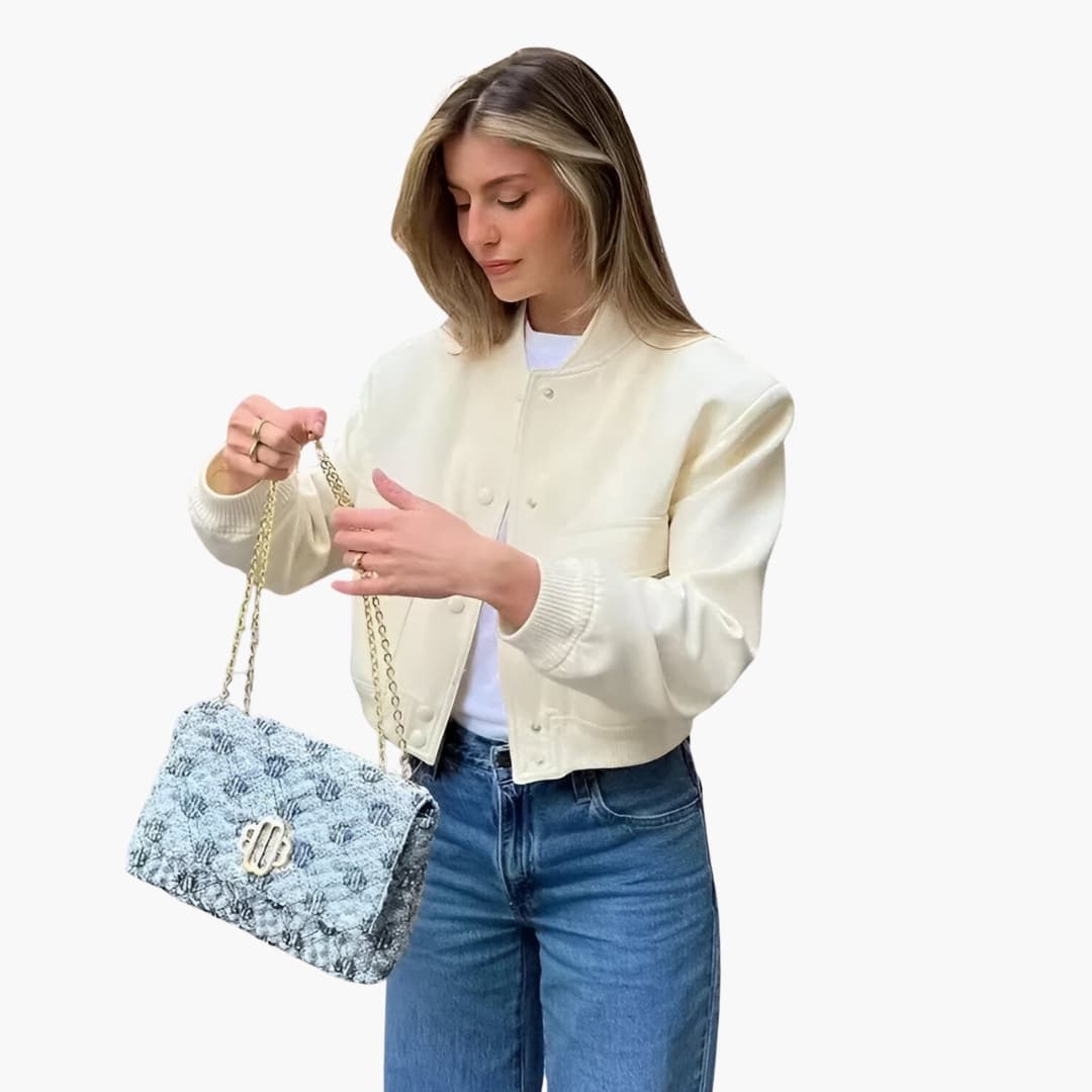 Damska krótka kurtka bomberka z klapami kieszeni