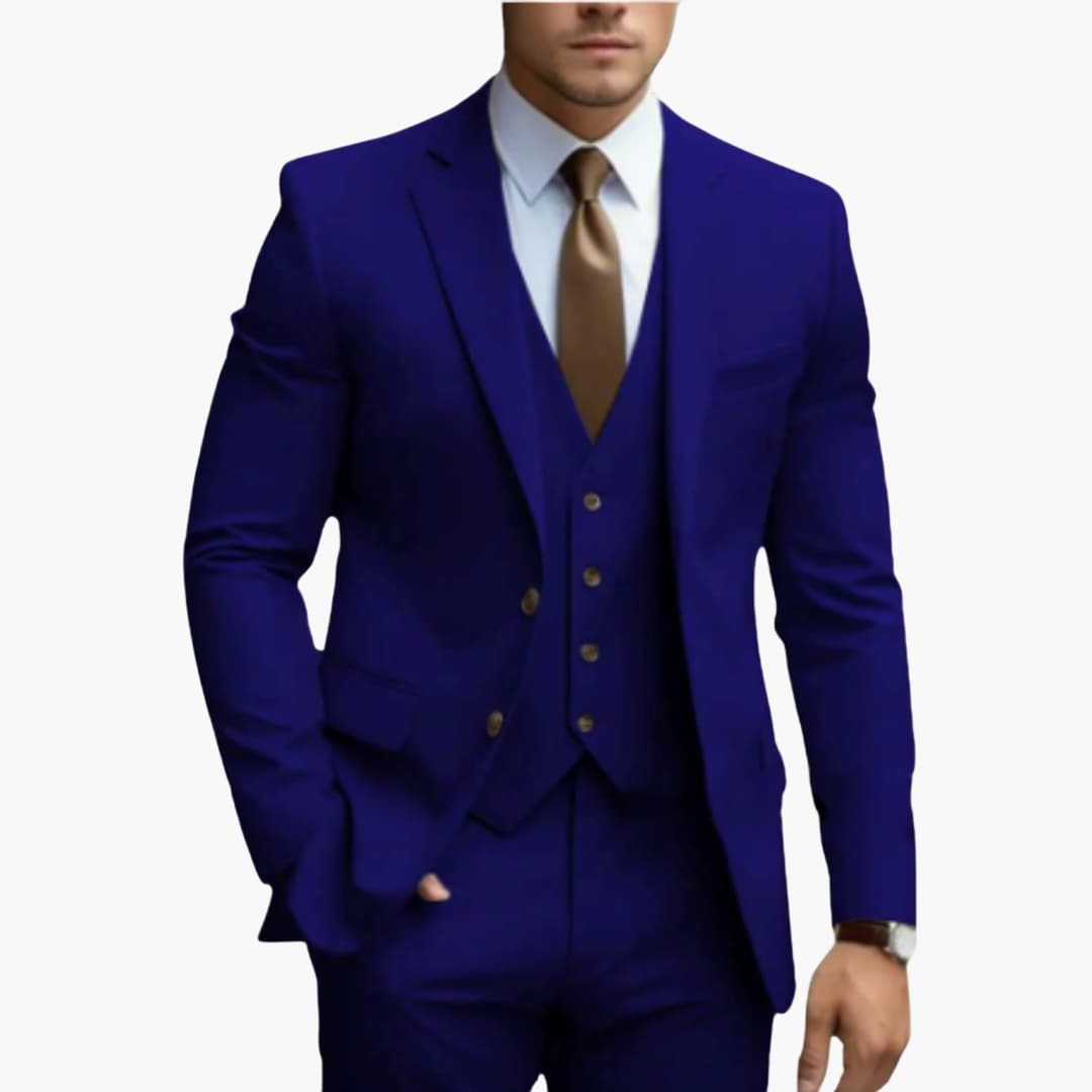 Trzyczęściowy garnitur męski z klapą z wycięciem i wąskimi spodniami
