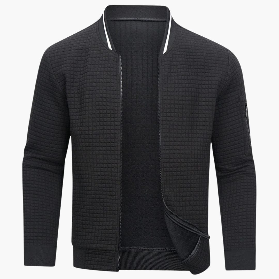 Męski sweter na zamek z prążkowaną strukturą