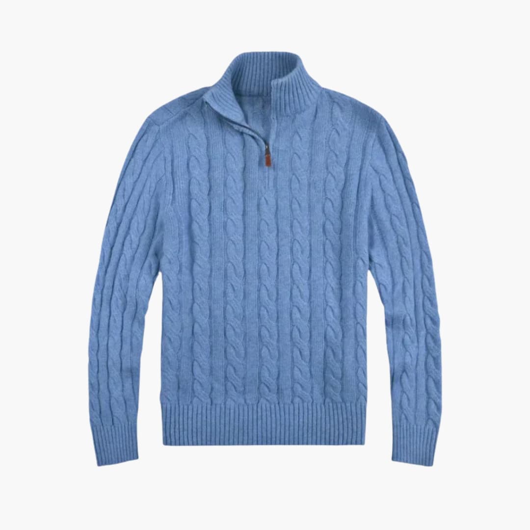 Sweter męski z półzamkiem i wzorem w warkocze