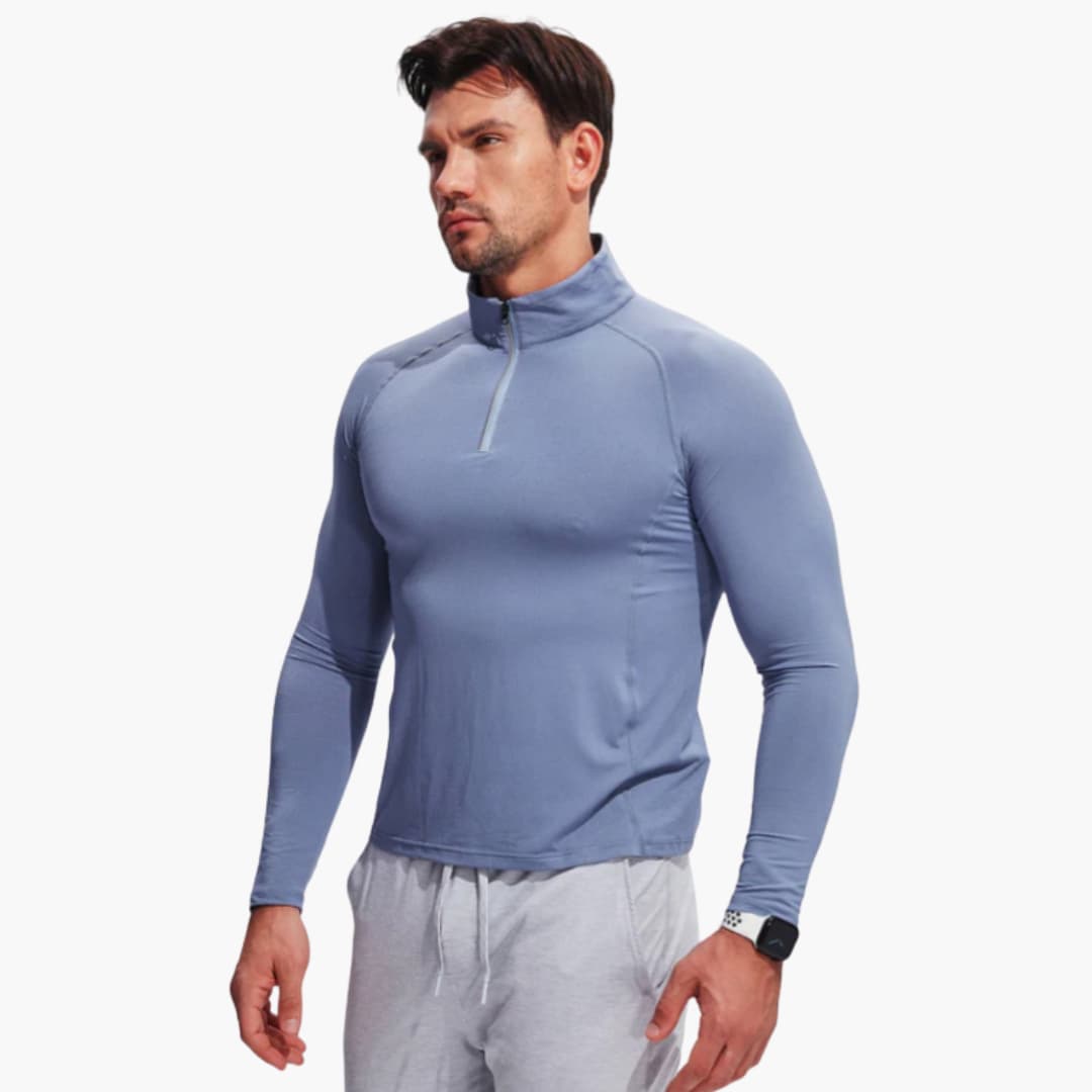 Męski pulower z zamkiem przy dekolcie i stójką