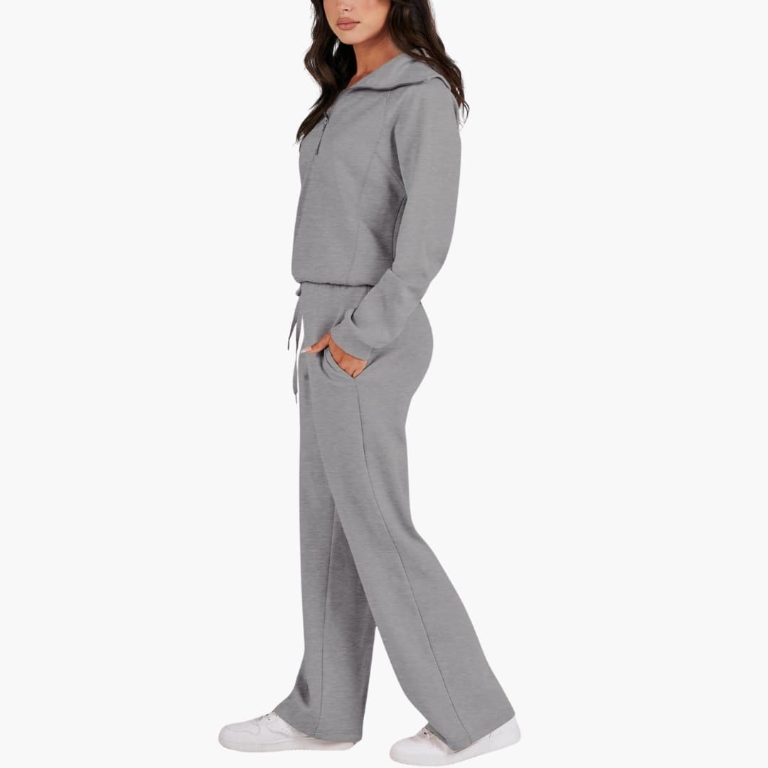 Damski zestaw do relaksu z półzamkiem i szerokimi spodniami