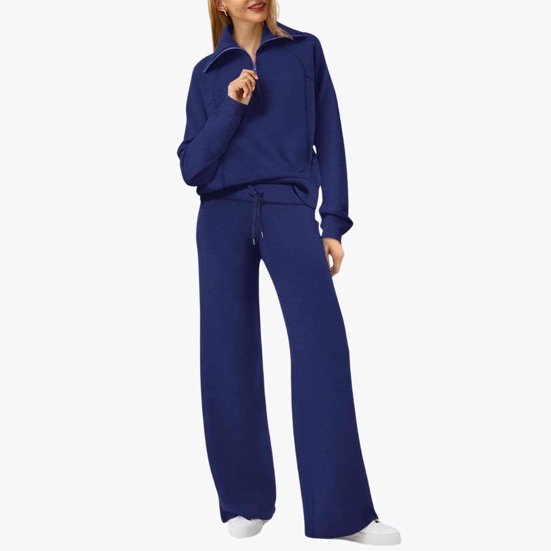 Damski zestaw dwuczęściowy z półgolfem na zamek i szerokimi spodniami