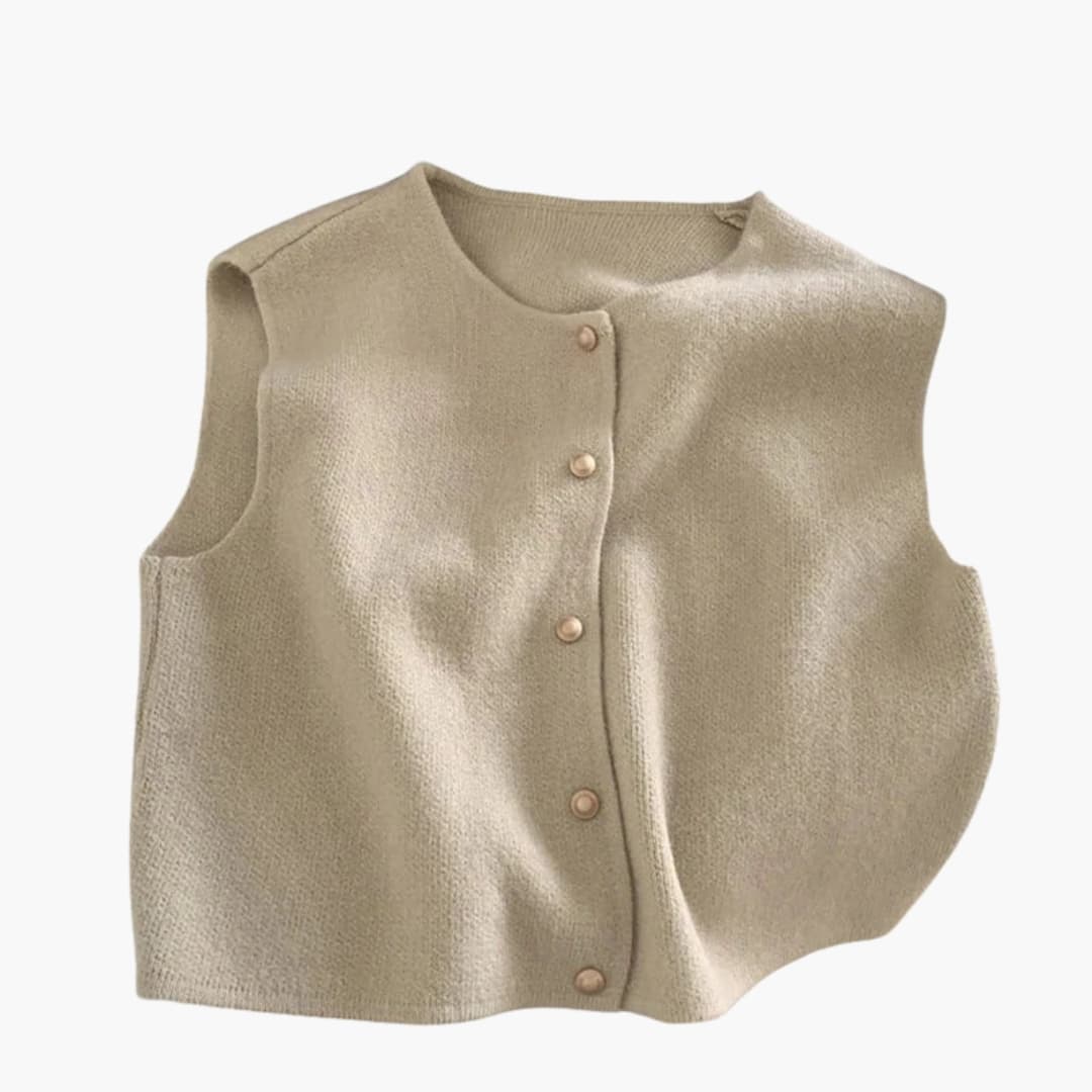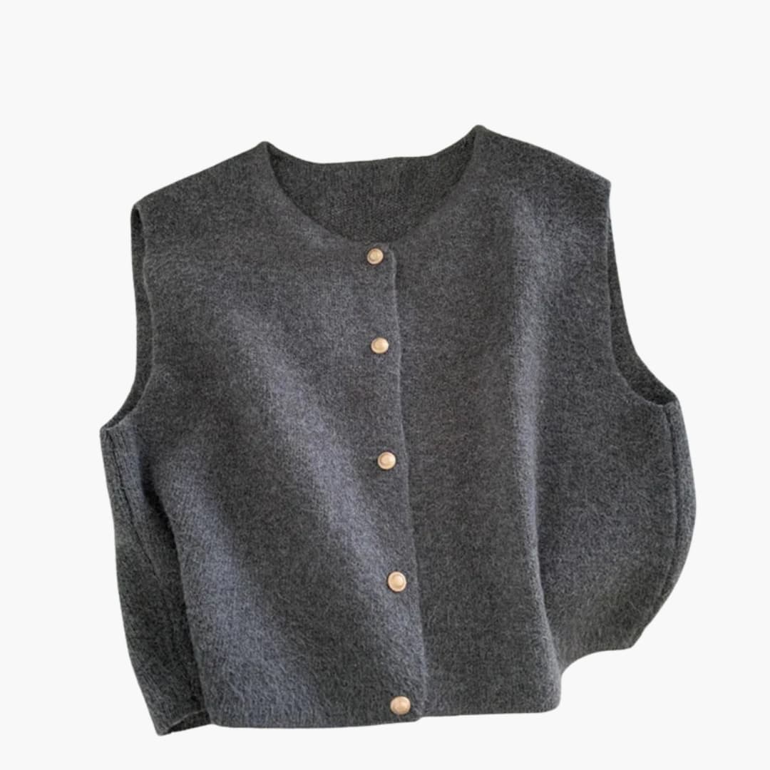 Damska bezrękawnikowa dzianinowa kamizelka z okrągłym dekoltem i listwą na guziki