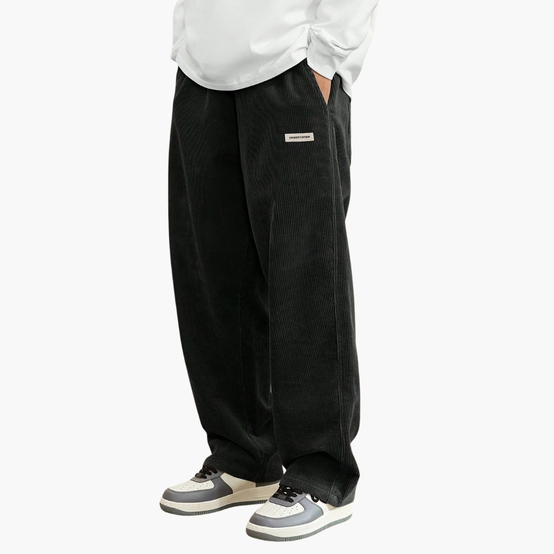 Cord Pants for Men with Wide Legs and Elastic Waist