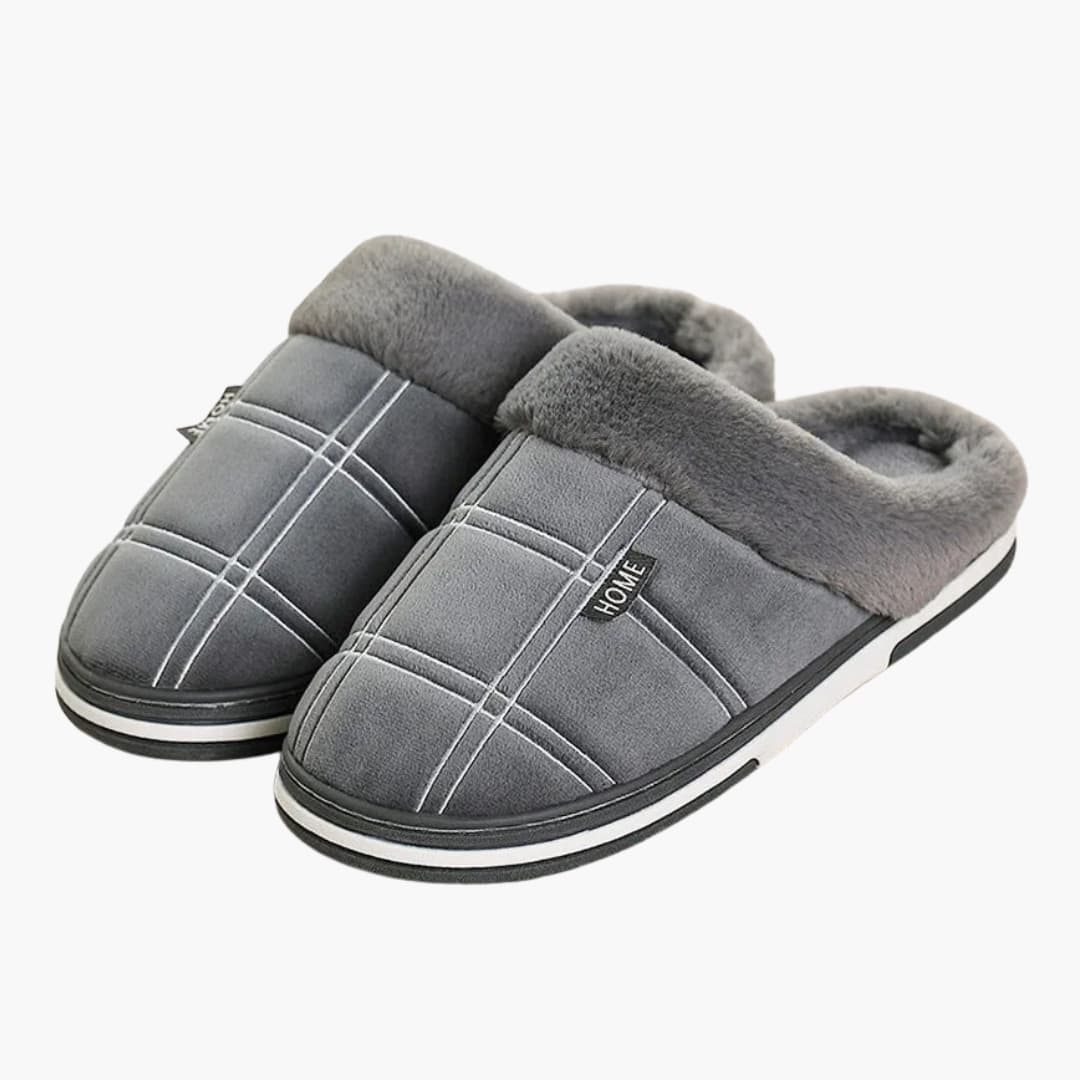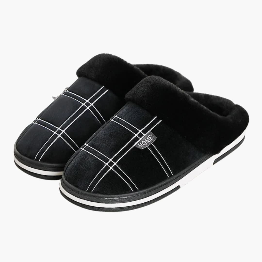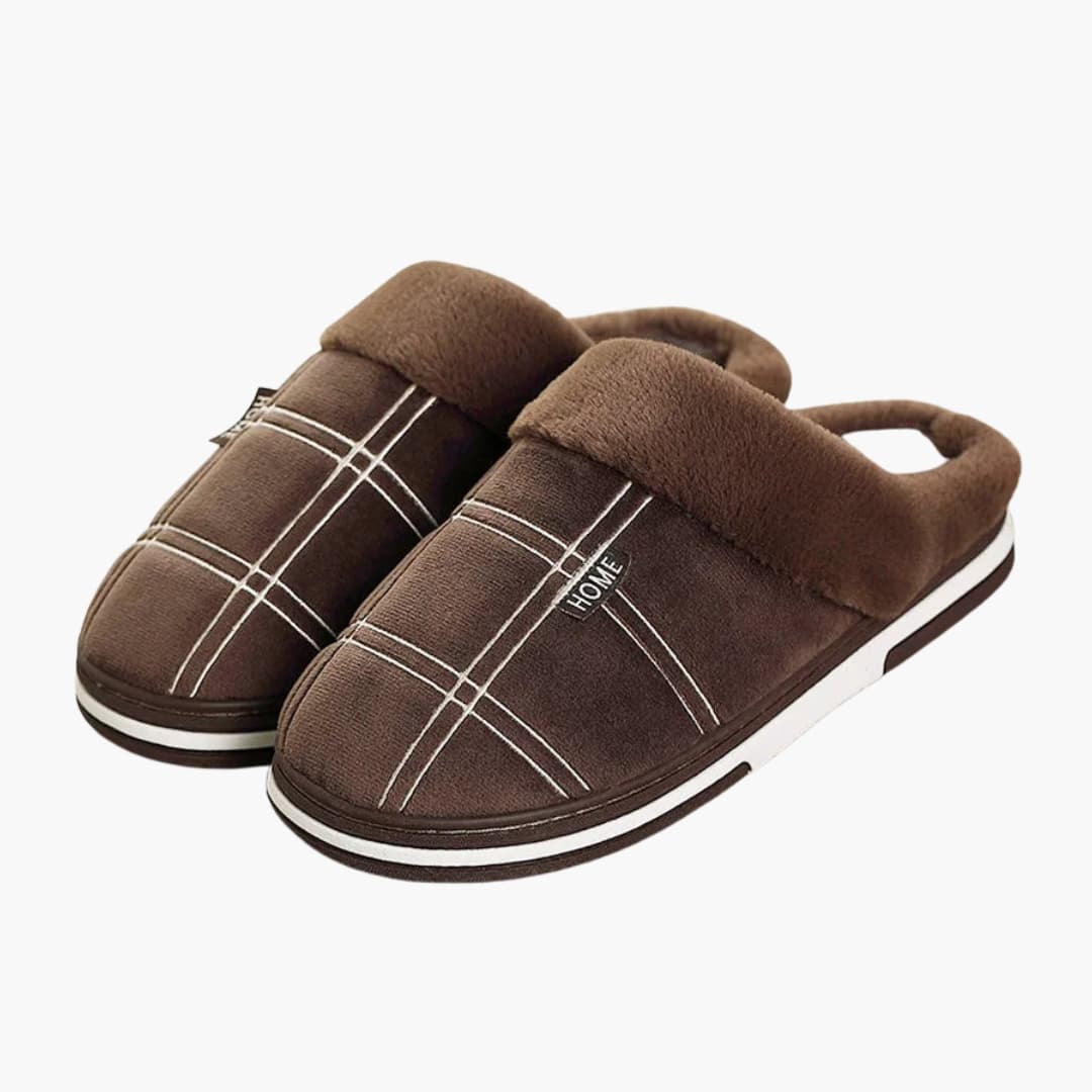 Men's Slippers with Checkered Pattern, Plush Lining, and Non-Slip Sole