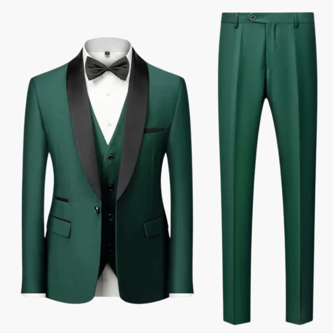 Three-Piece Set: Includes jacket, vest, and matching trousers