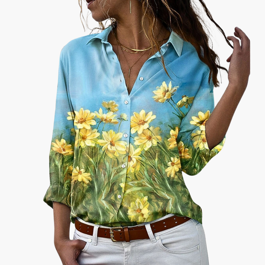 Women's Blouse with Button Placket and Printed Surface