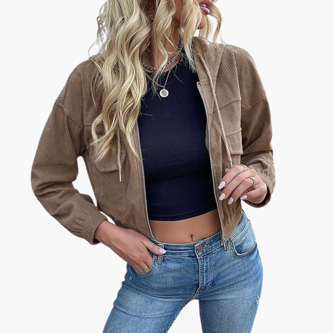 Women's cord jacket with a casual cut and practical pockets for storage.