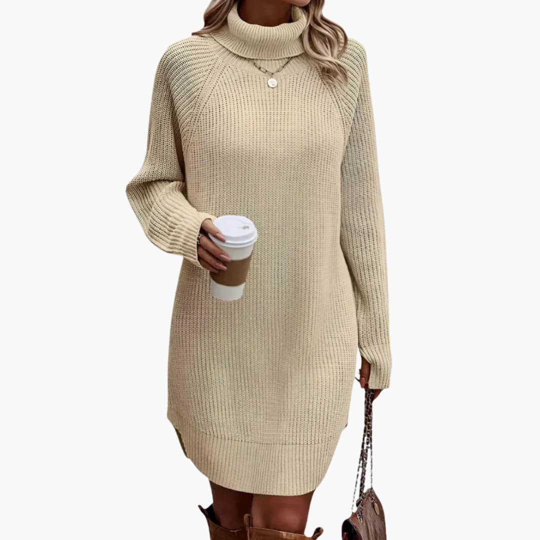 Women's Knit Dress with Turtleneck and Long Sleeves