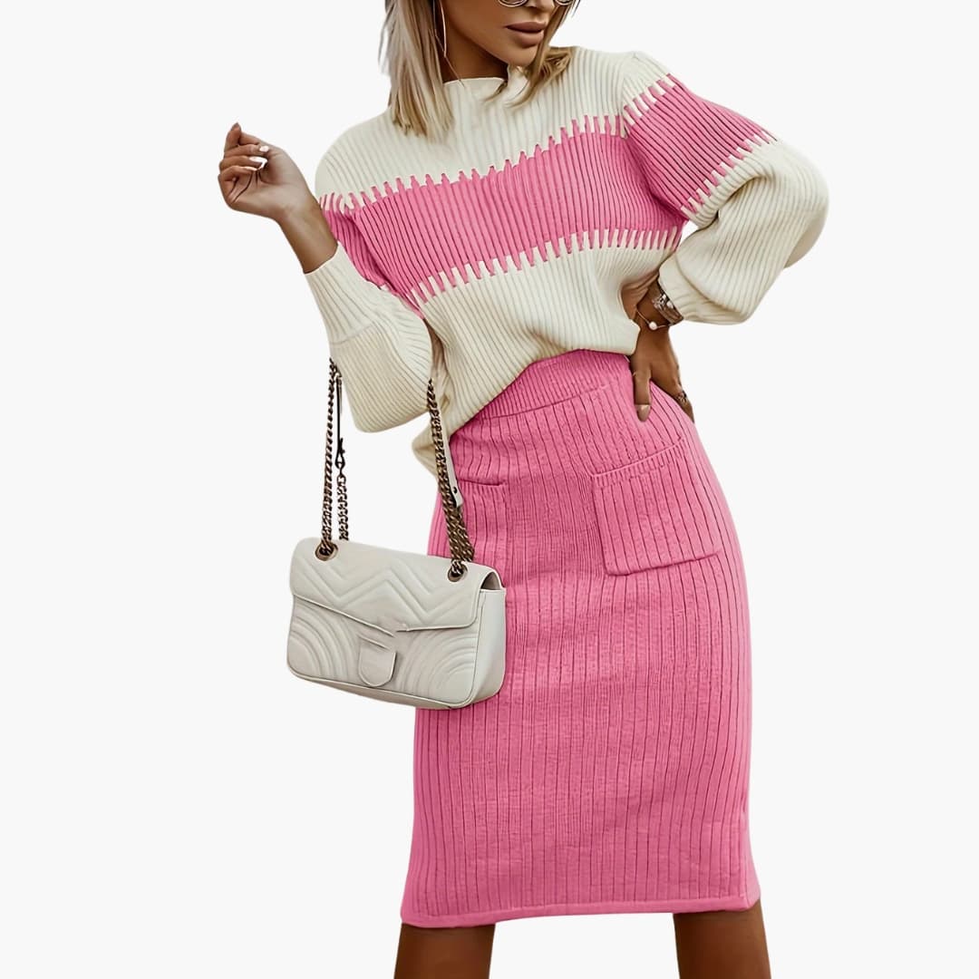 Conjunto de Duas Peças para Mulher com Camisola de Gola Redonda