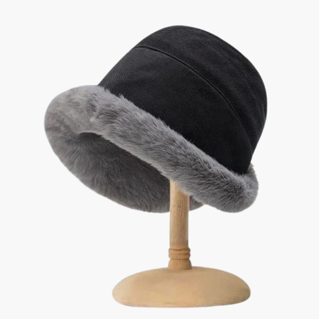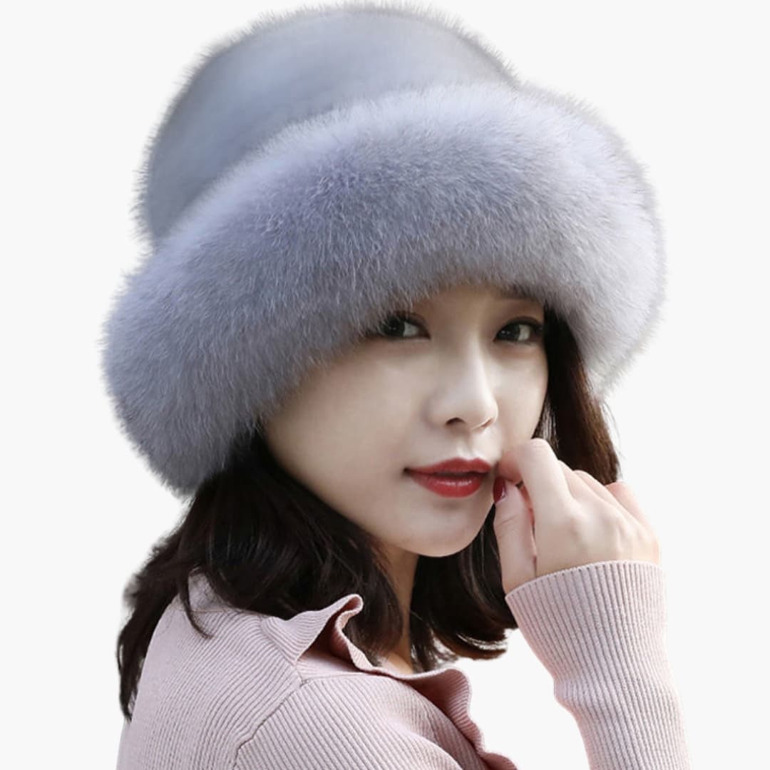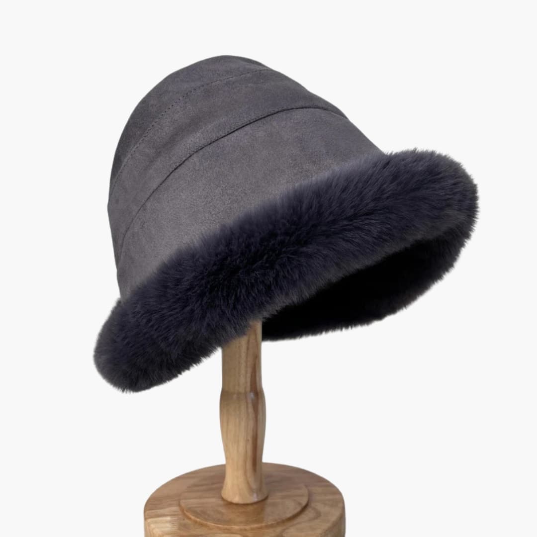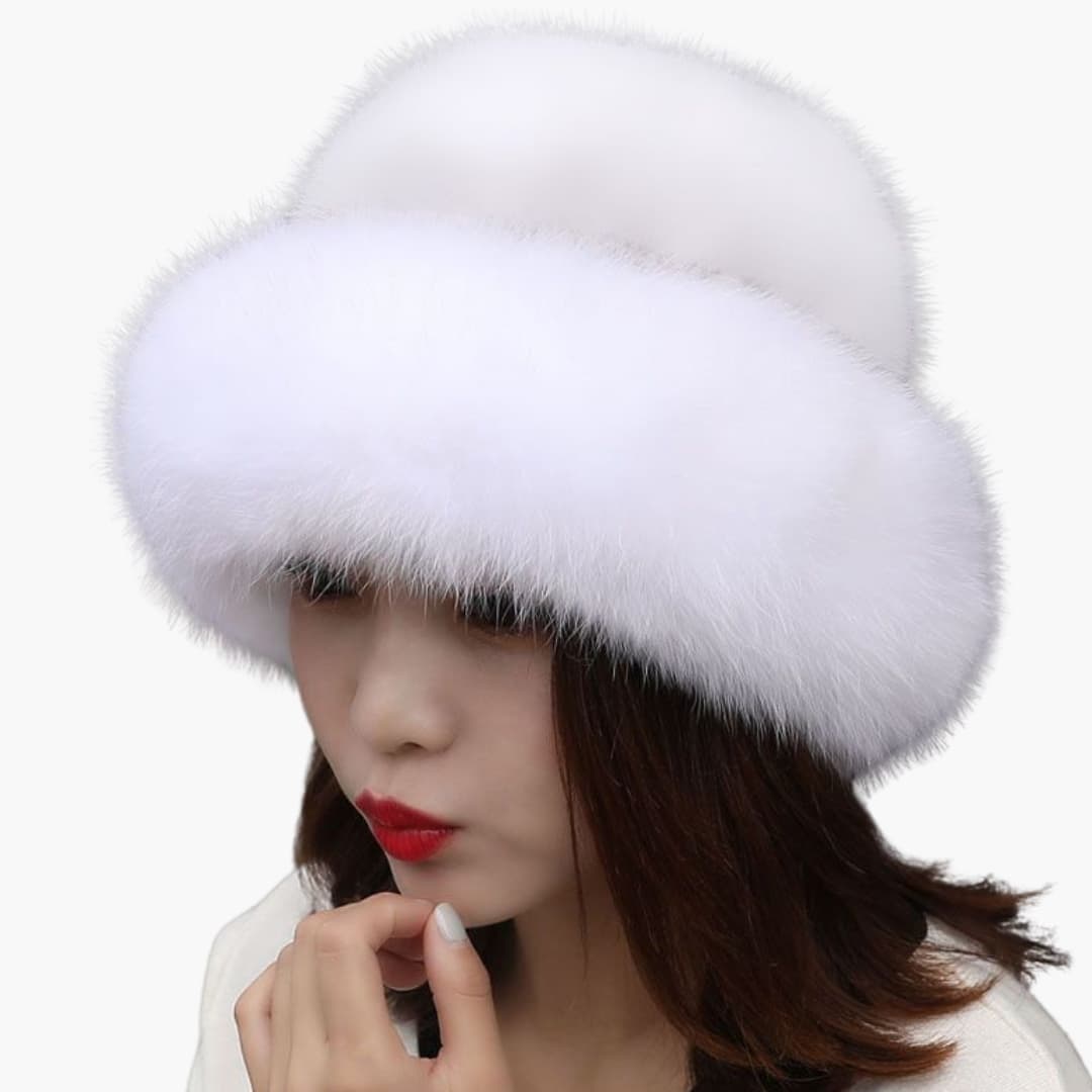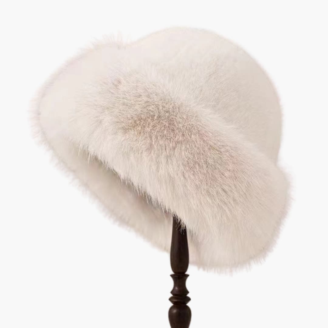 Chapéu de Inverno Feminino com Superfície de Pelo Sintético e Forma Redonda