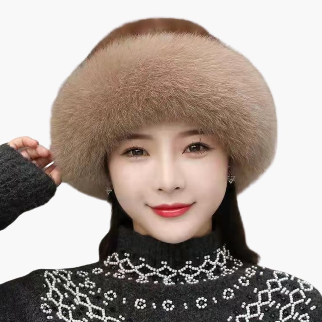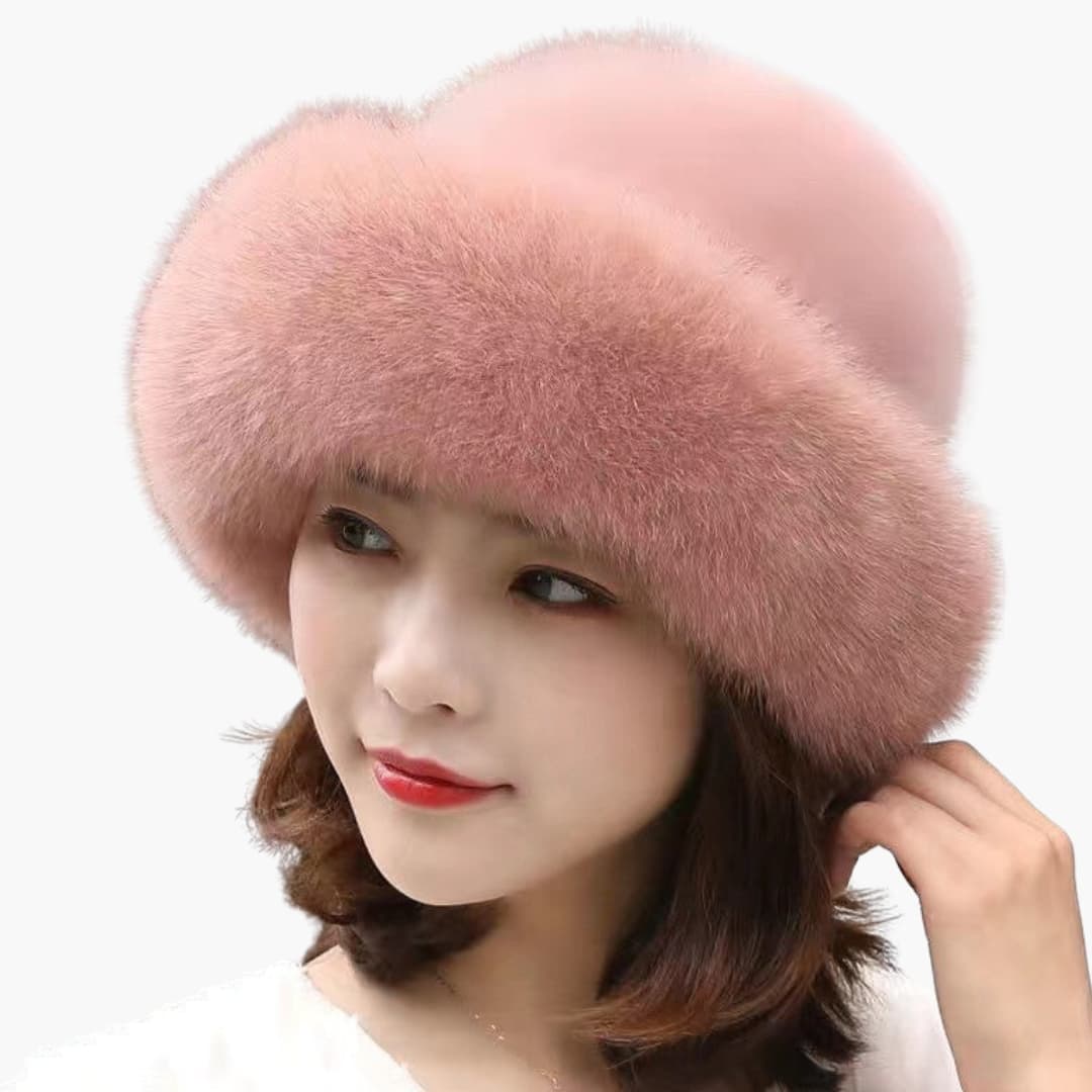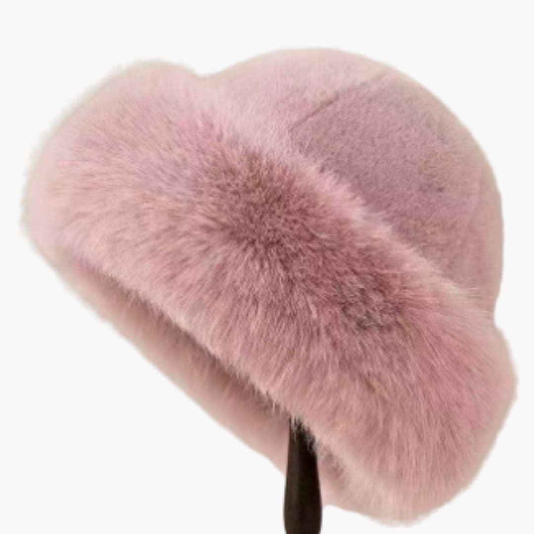 Gorro de Inverno Feminino em Pêlo Sintético com Acabamento Aveludado e Forma Redonda