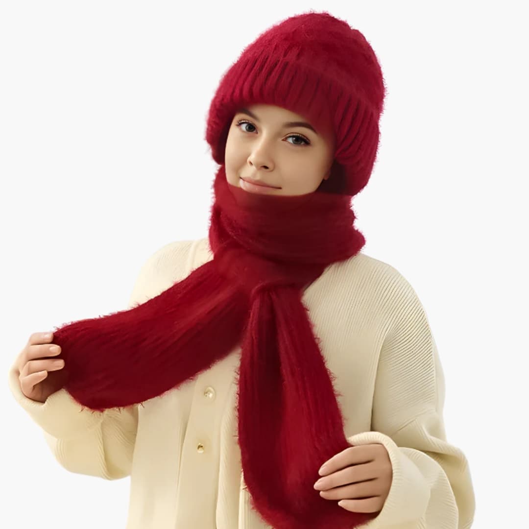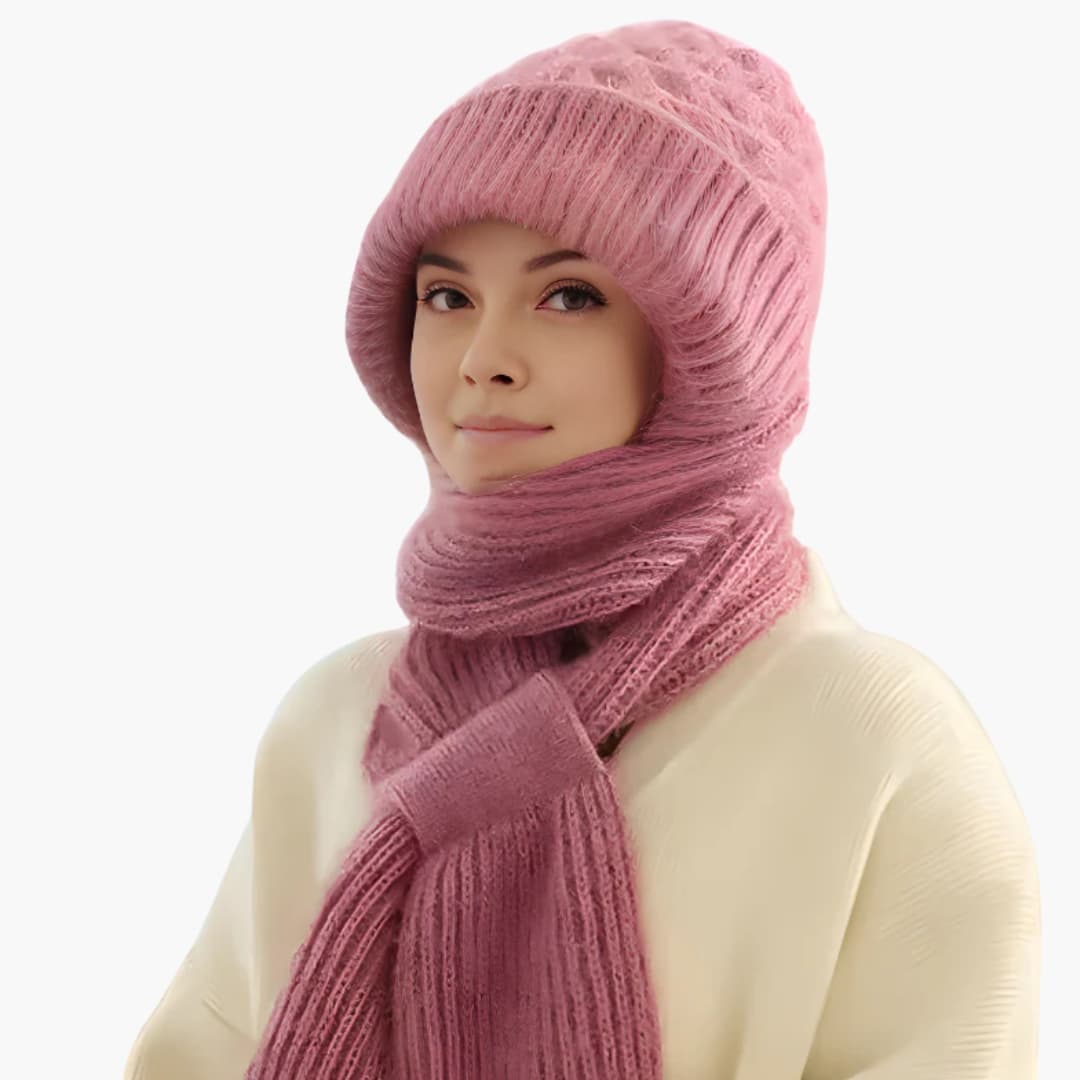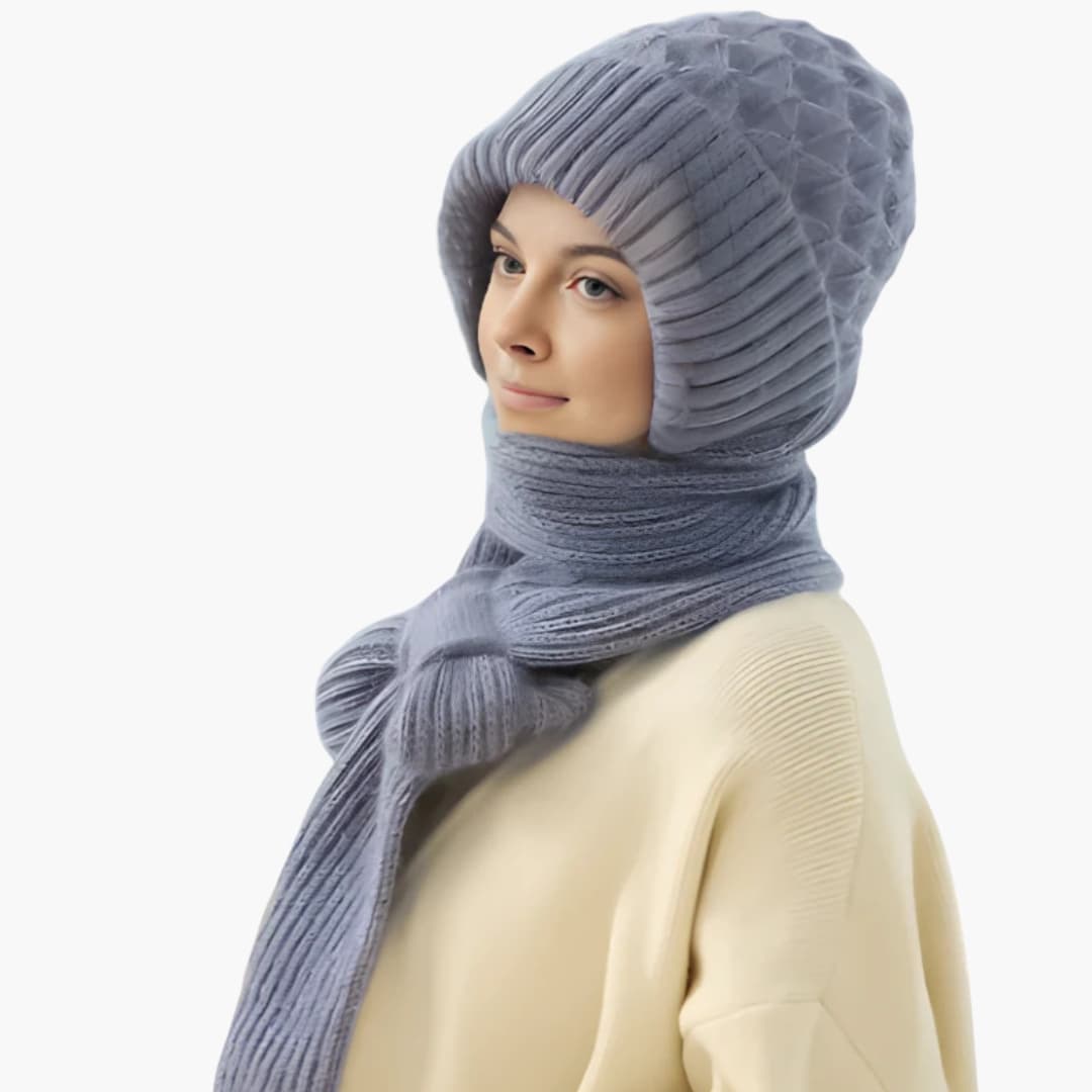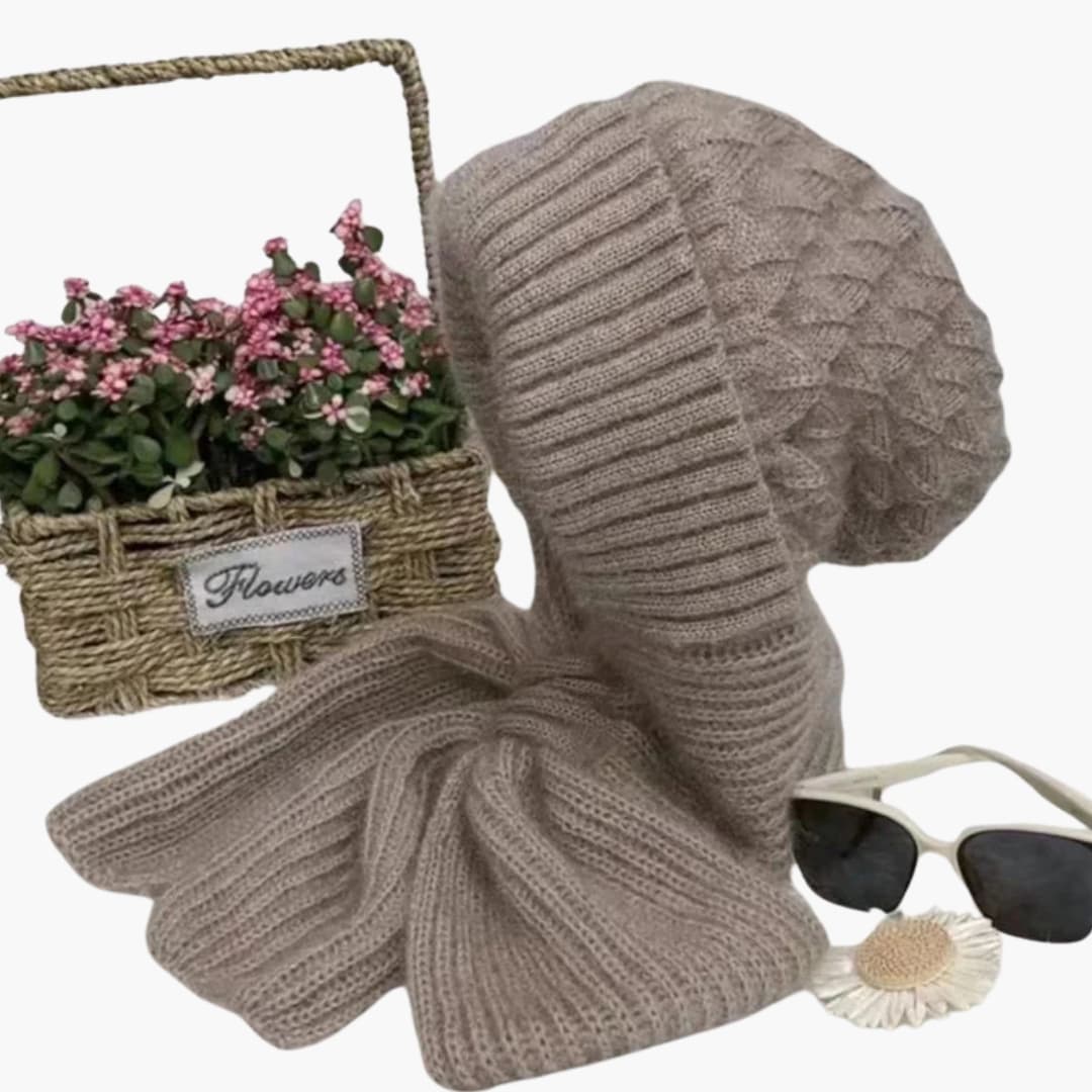 Conjunto de Chapéu e Cachecol de Inverno para Mulher com Superfície Tricotada