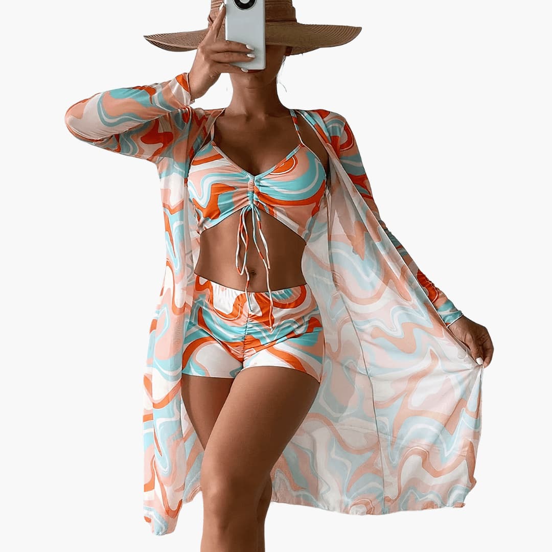 Conjunto de Praia de Verão para Mulher com 3 Peças e Mangas Compridas