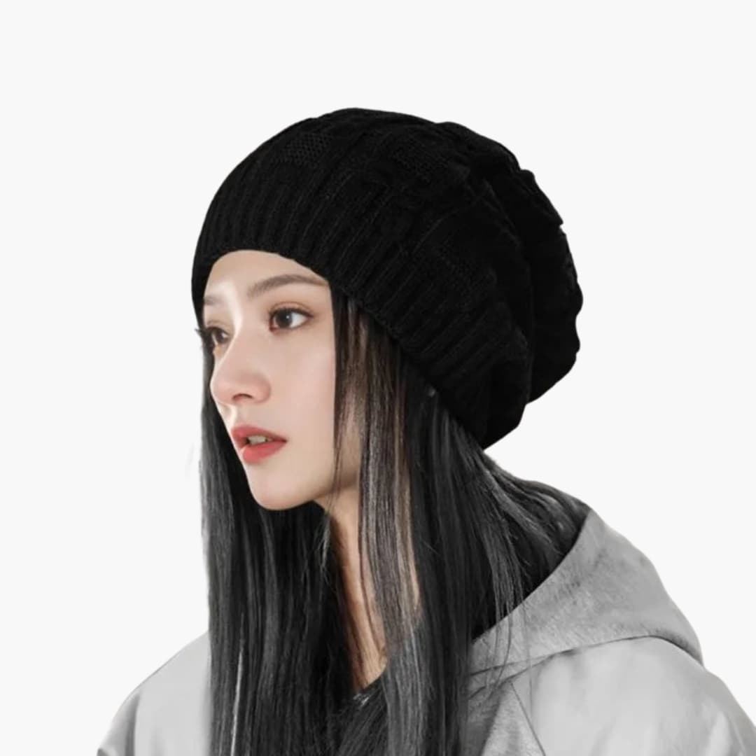 Uso: Gorro de inverno feminino como acessório sazonal em malha.