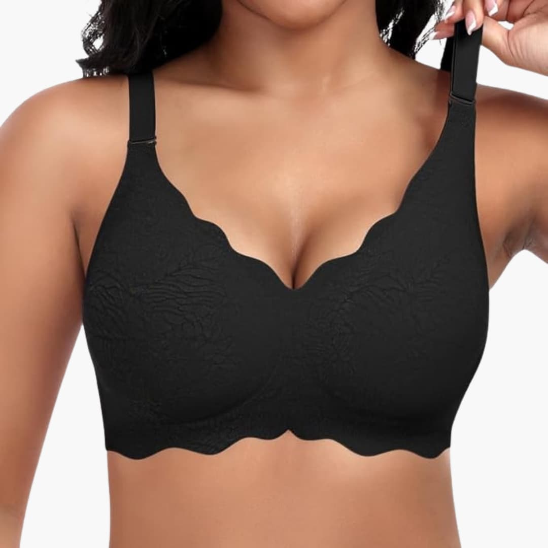Sutiã sem fios para mulher com decote em V e detalhes em renda