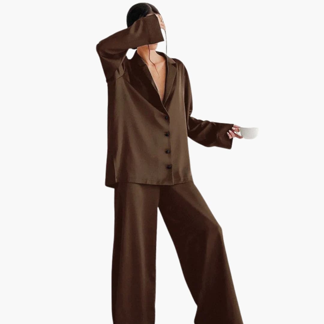 Pyjamaset för kvinnor med skjorta och byxor med dragsko