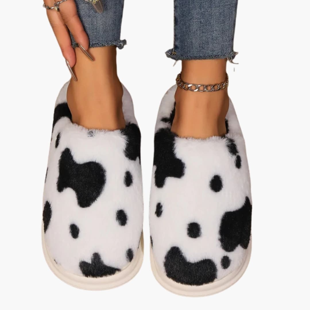 Damskor med ko-mönster och plyschfoder
