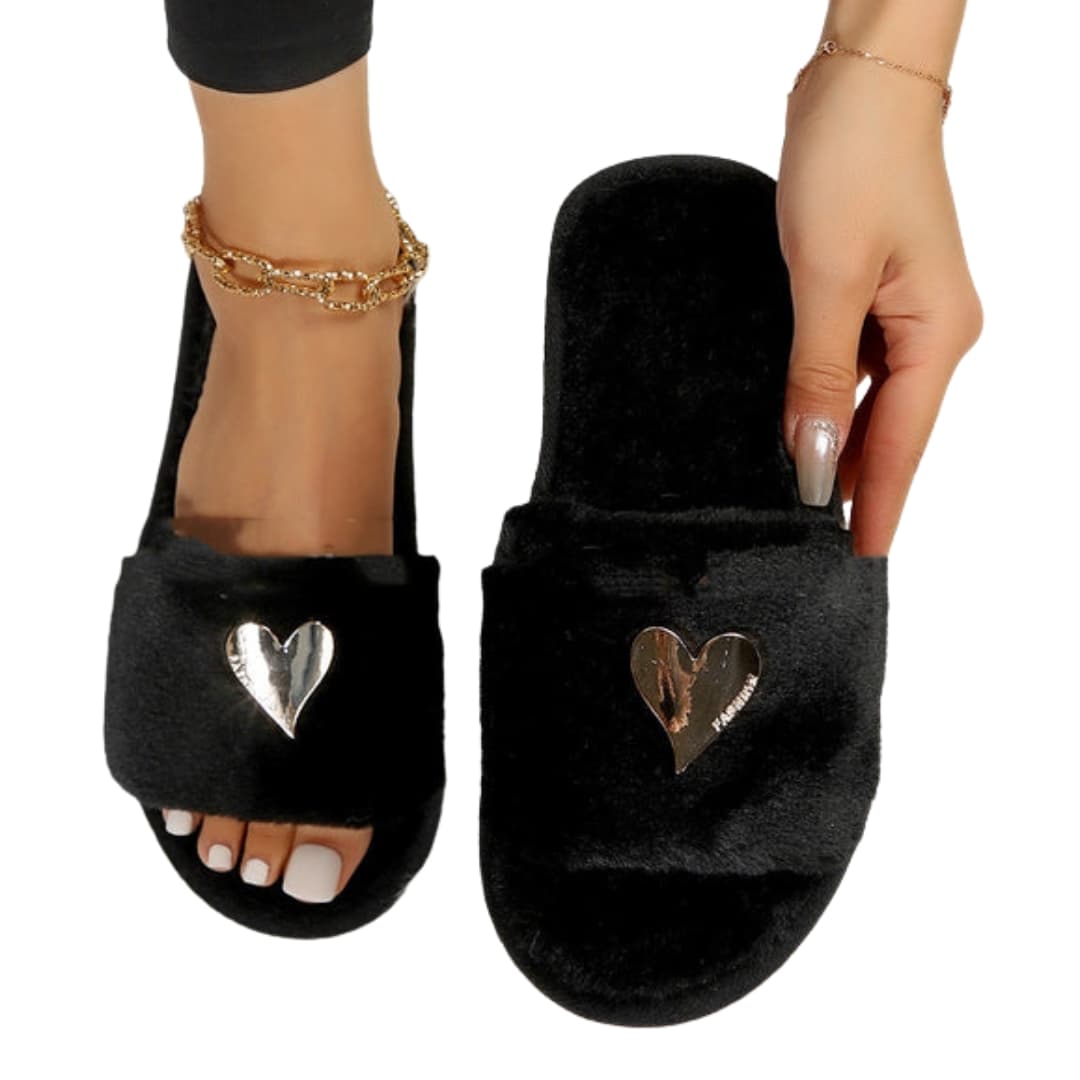 Damskor med öppen tå och hjärtdetalj