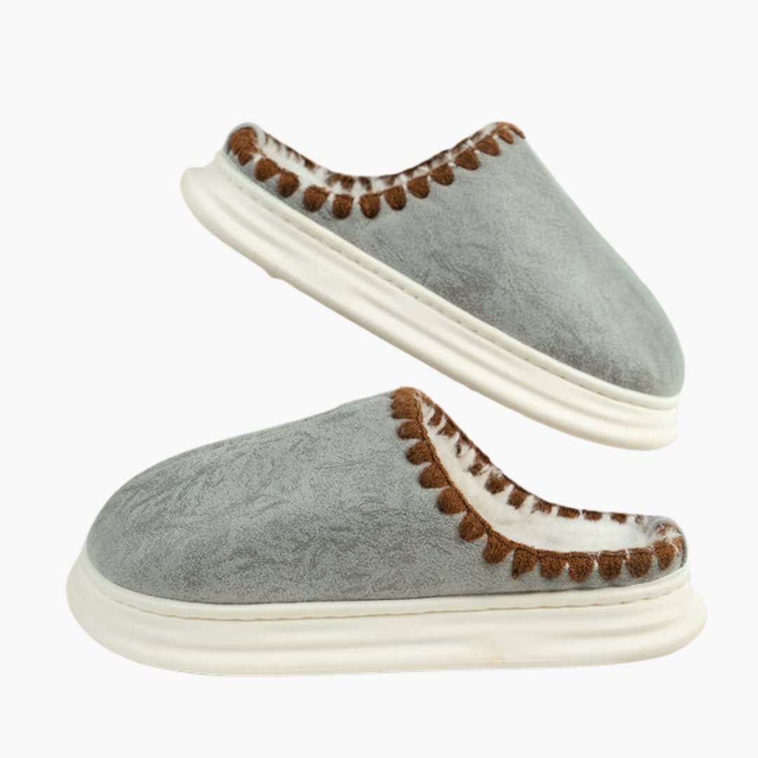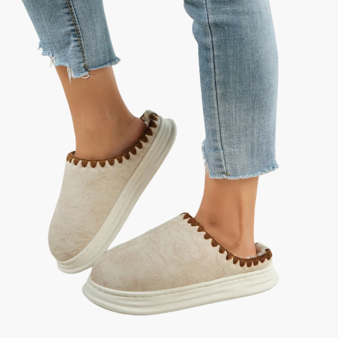 Damskor med plyschfoder och mönstrad kant