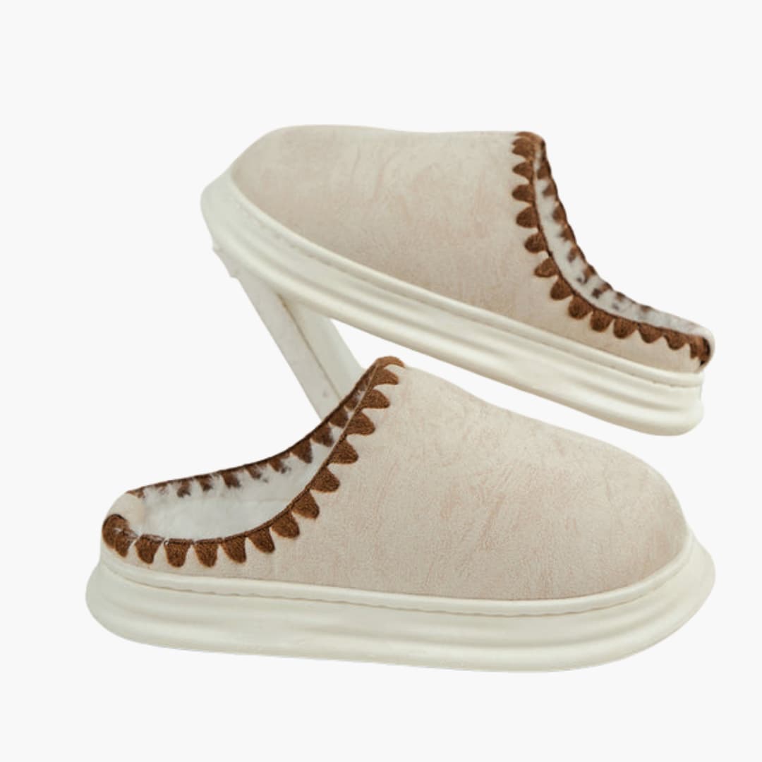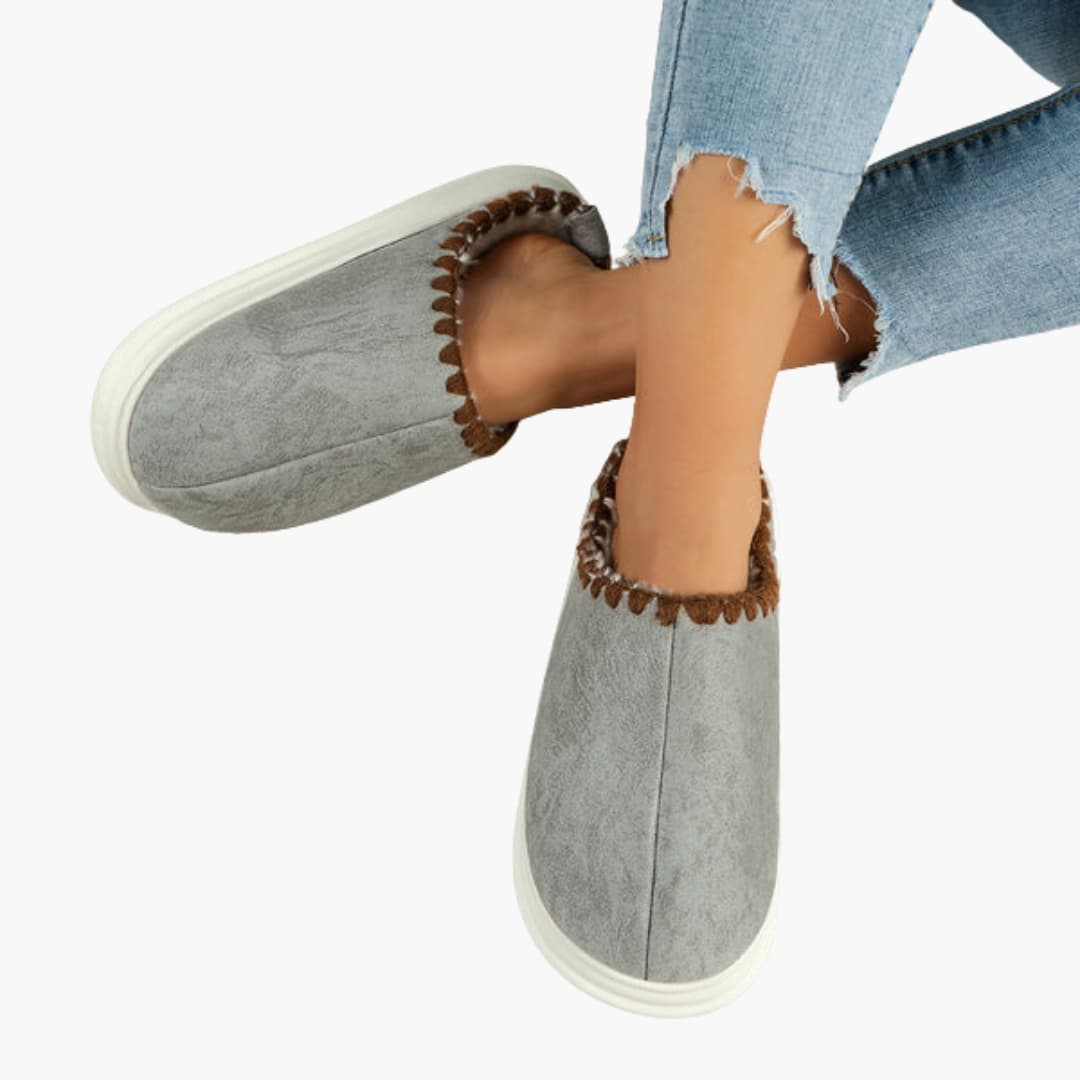 Damskor med plyschfoder och dekorativ sömnad