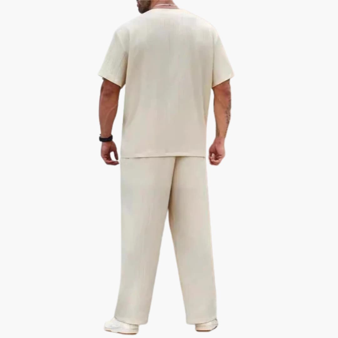 Herrset med veckad tvådelad outfit med rundhalsad t-shirt och joggingbyxor