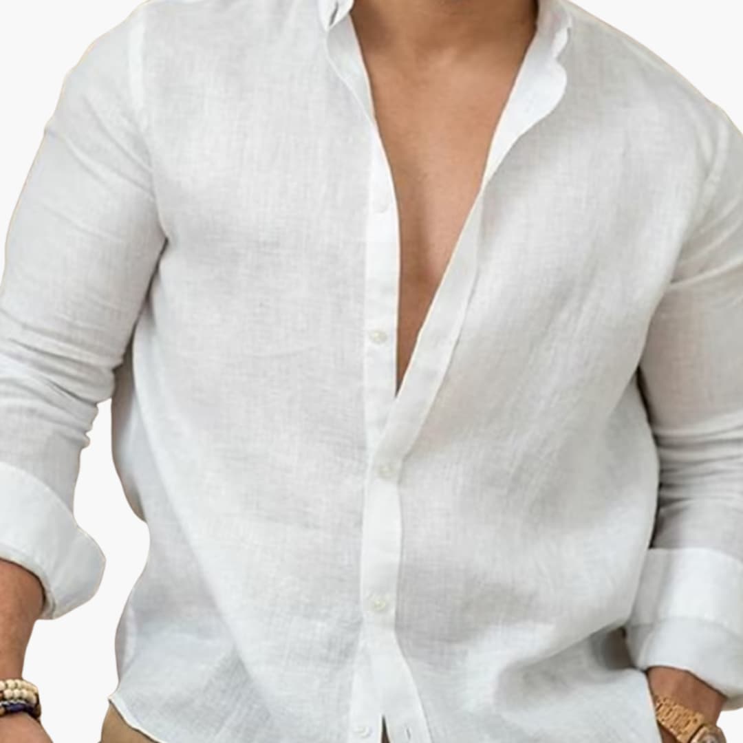 Arlo linneskjorta för män erbjuder en tidlös form med en praktisk och mångsidig design som passar för olika tillfällen. Den kan bäras på kontoret, under en avslappnad dagsutflykt eller på fritiden. Denna skjorta säkerställer ett stilfullt utseende och en passform som anpassar sig väl efter kroppen.