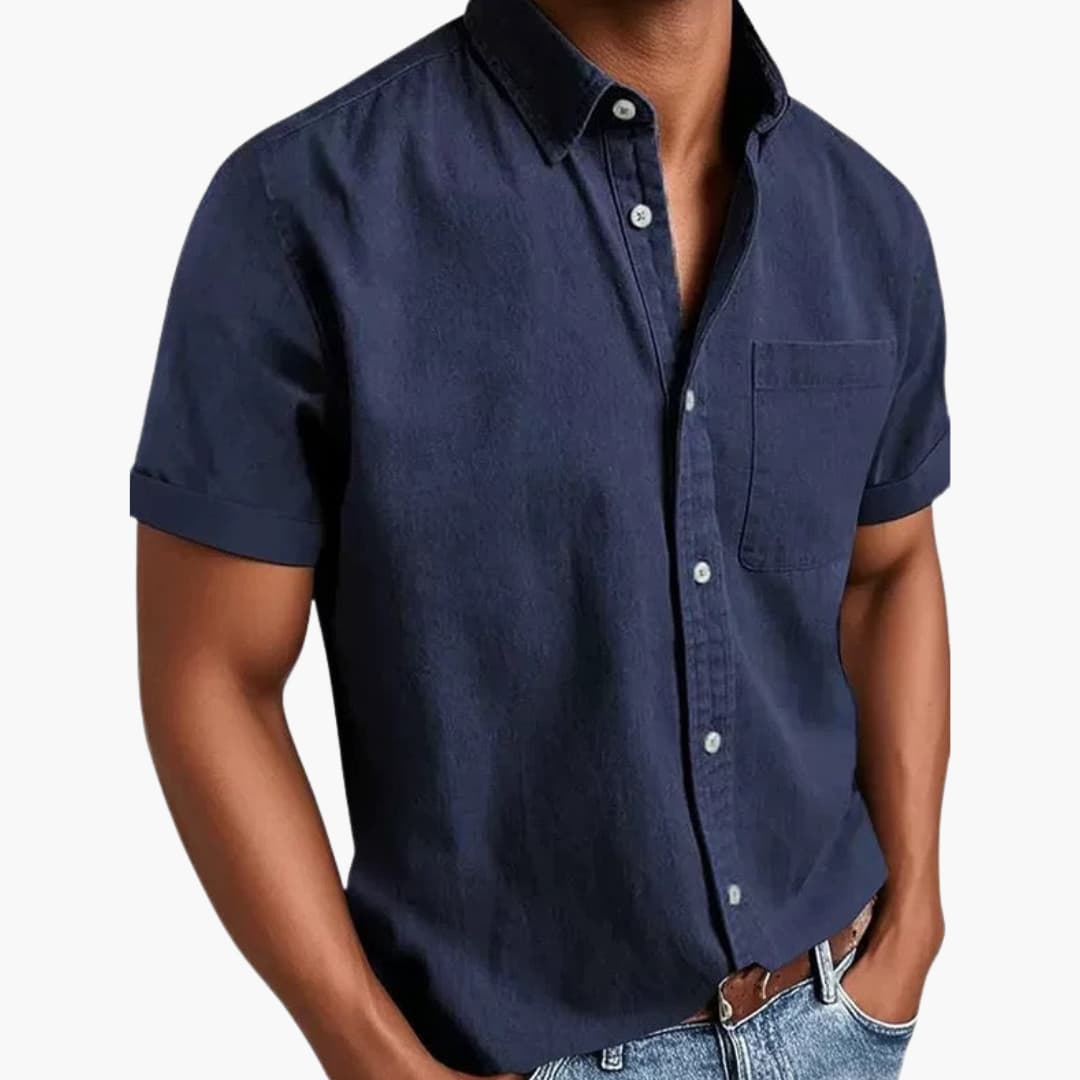 Herrskjorta med kort ärm och bröstficka för vår och sommar