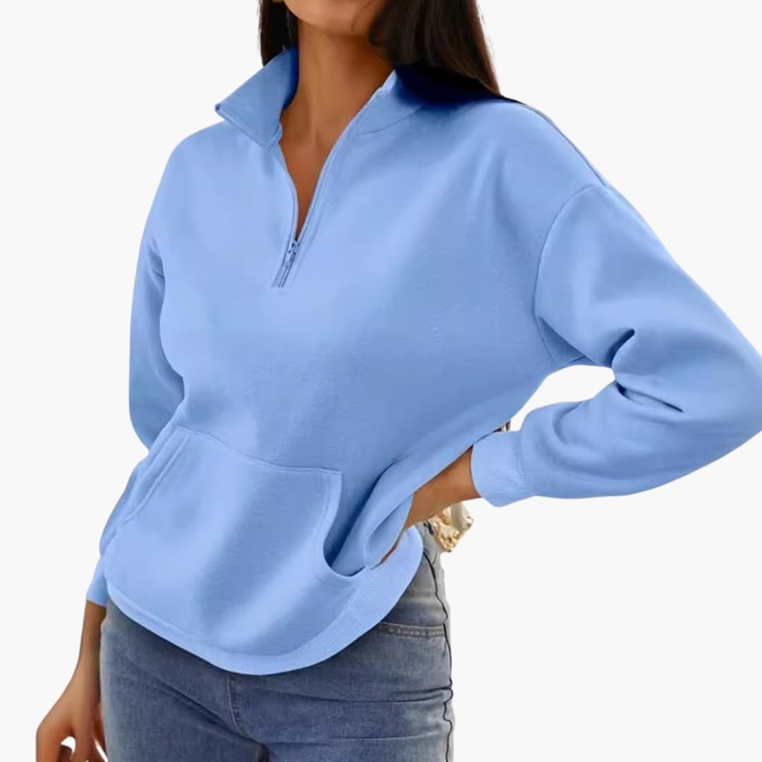 Damtröja med halv dragkedja, ståkrage och känguruficka