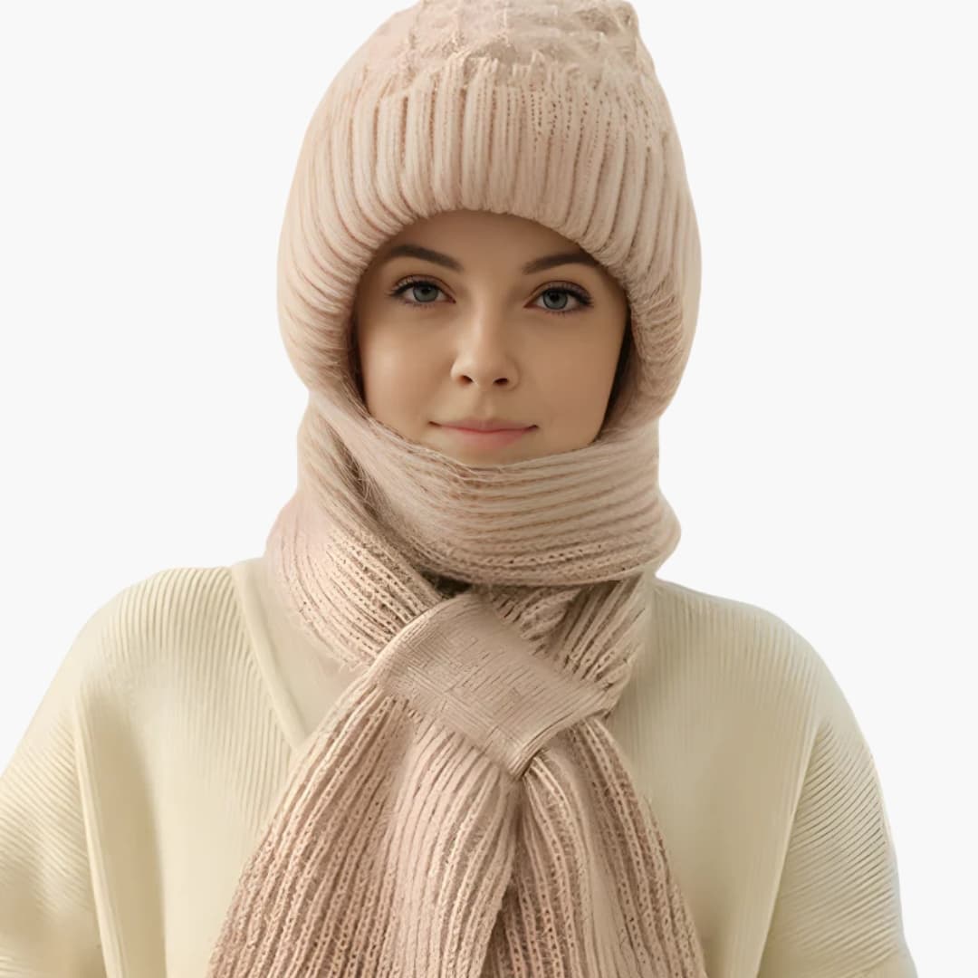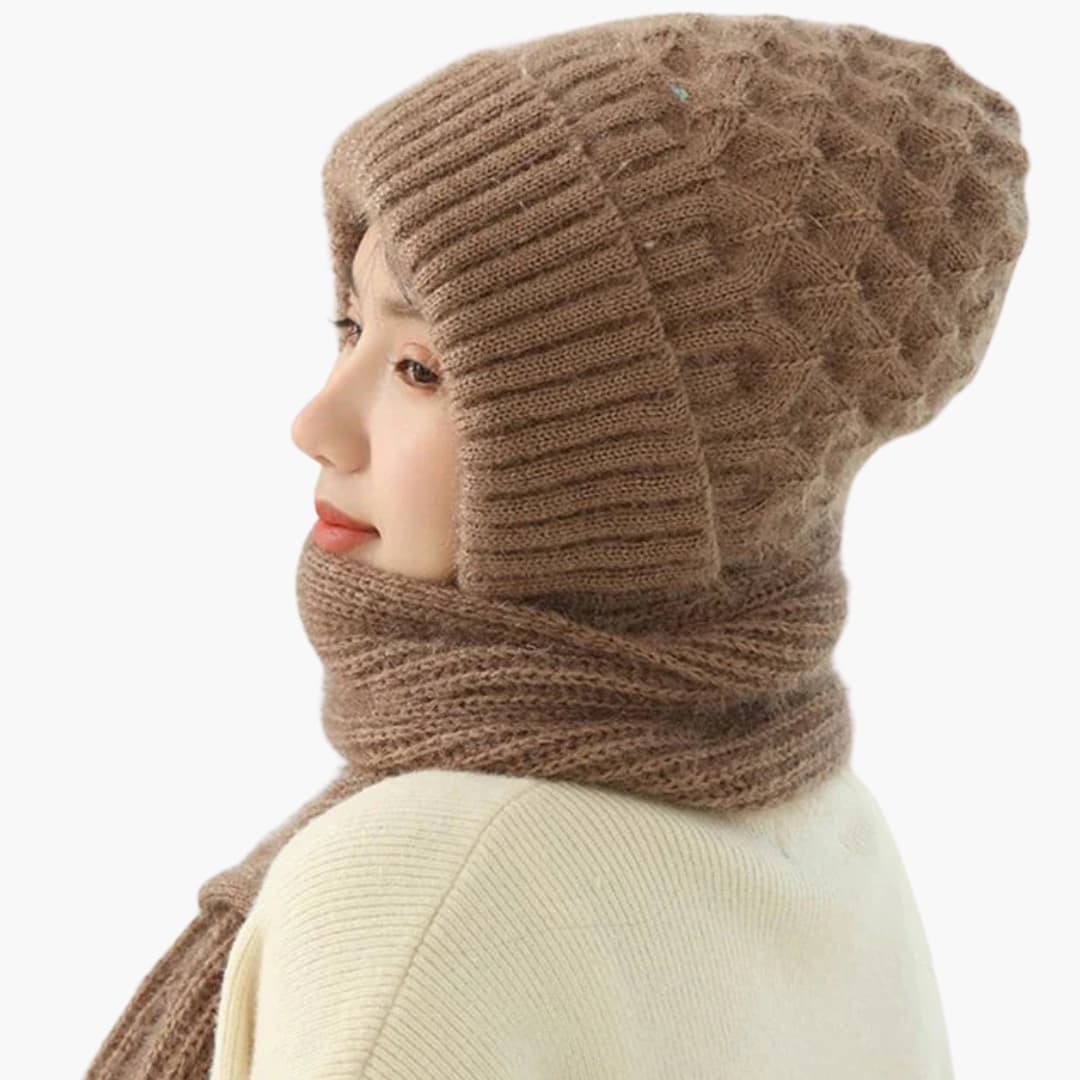 Damvintermössa och halsduksset med stickad yta